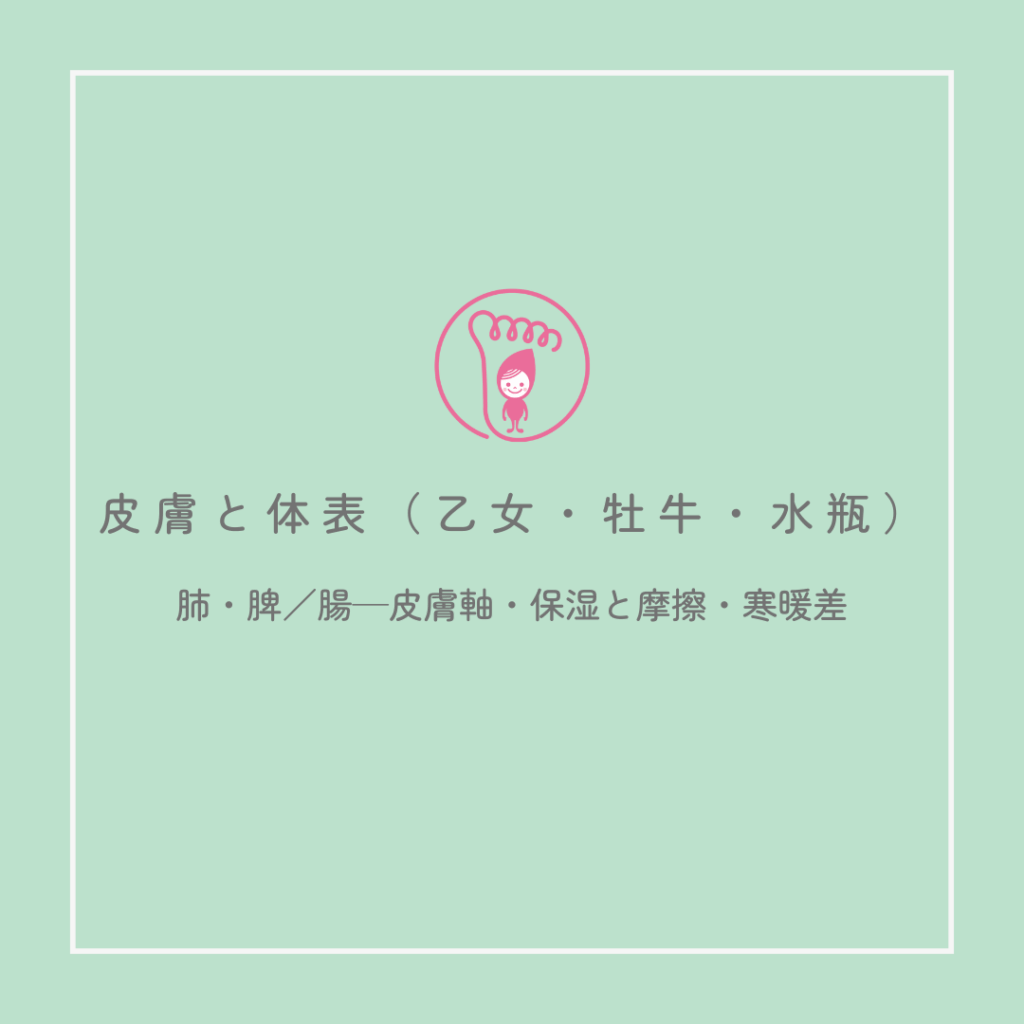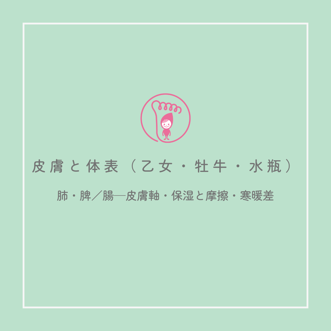 BY-6 | 皮膚と体表(乙女座・牡牛座・水瓶座) — 肺・脾/腸—皮膚軸・保湿と摩擦・寒暖差 | 2026/03/14 |