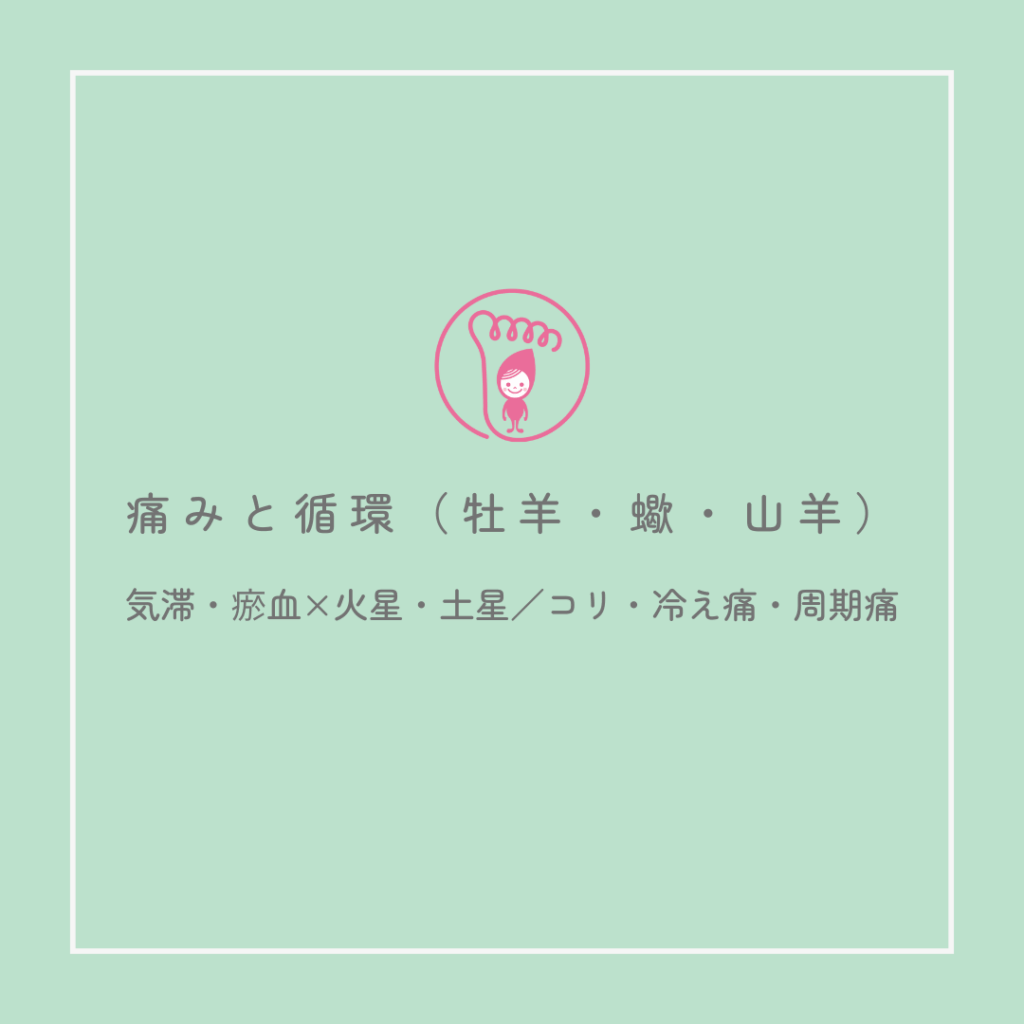 BY-7 | 痛みと循環(牡羊座・蠍座・山羊座) — 気滞・瘀血×火星・土星/コリ・冷え痛・周期痛 | 2026/04/04 |