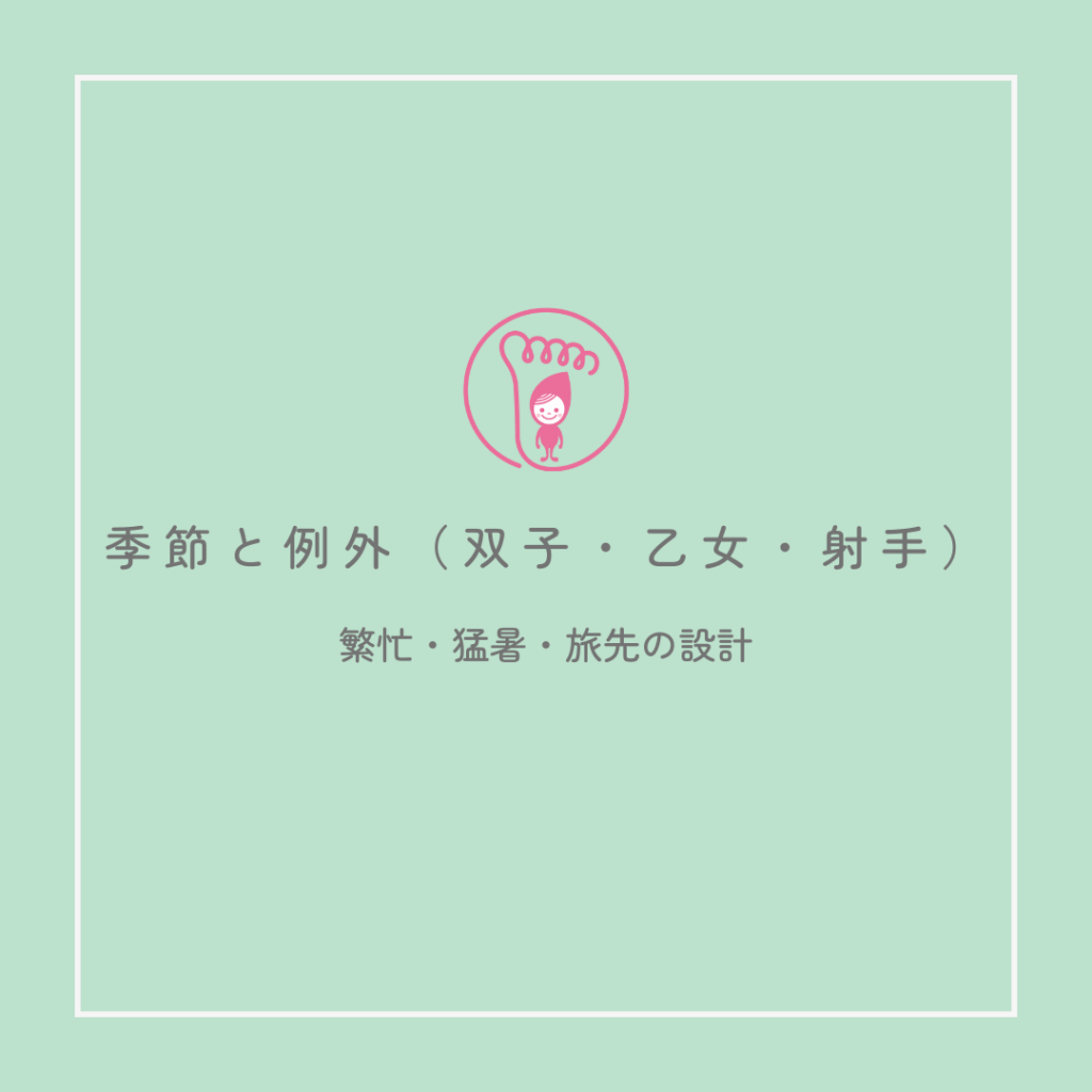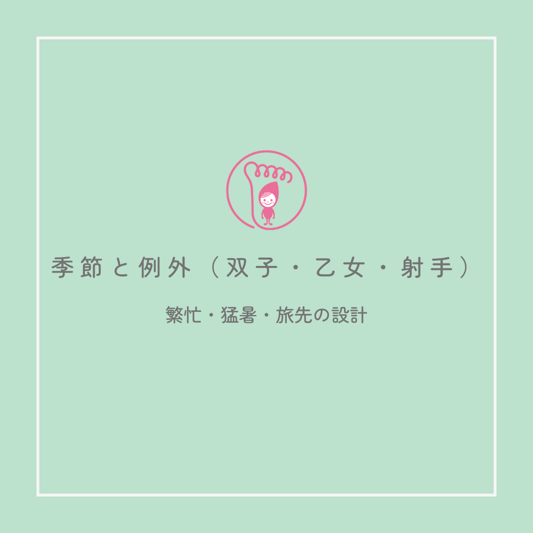 BY-8 | 季節と例外(双子座・乙女座・射手座) — 繁忙・猛暑・旅先の設計 | 2026/04/25 |